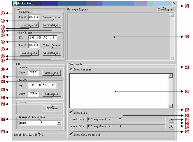 SocketTestDlg是卓嵐公司開發(fā)的,綜合的TCP、UDP協(xié)議的調(diào)試軟件。為了用戶便于后面的操作,這里簡要介紹SocketTestDlg的使用。