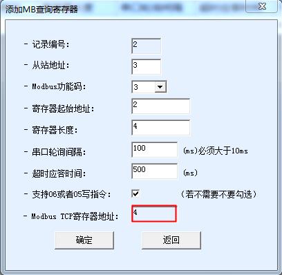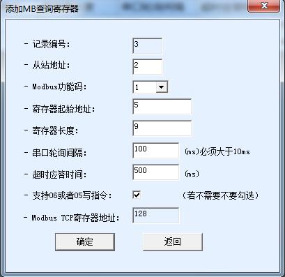9.Modbus TCP寄存器地址:這個地址是系統(tǒng)自動按照順序計算的,Modbus TCP端只要按照這個起始地址讀取即可得到這條RTU指令獲得的數(shù)據(jù)。這個參數(shù)是地址映射的關(guān)鍵信息。