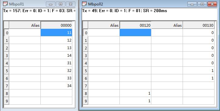 如圖所示返回時間大約為18ms。這個反應(yīng)時間比“存儲型”Modbus的第一次應(yīng)答時間要快速很多。 打開多個Modbus TCP客戶端可以同時對網(wǎng)關(guān)進(jìn)行數(shù)據(jù)采集。說明可以支持多主機功能。 在Modbus TCP端修改某個寄存器的值,則在RTU端的數(shù)據(jù)就被修改,同時也會反饋到Modbus TCP端。這說明發(fā)送的05/06單線圈修改和單寄存器修改指令寫是支持的。