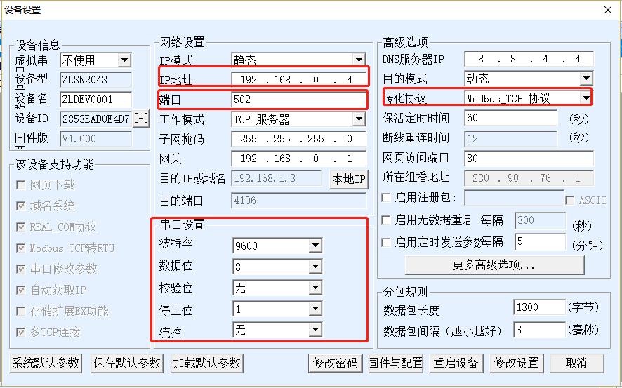 第三步,本文遠(yuǎn)程服務(wù)器的IP地址為192.168.0.4,遠(yuǎn)程端口號(hào)設(shè)為502。所以客戶端側(cè)該數(shù)據(jù)結(jié)構(gòu)的各項(xiàng)值為: