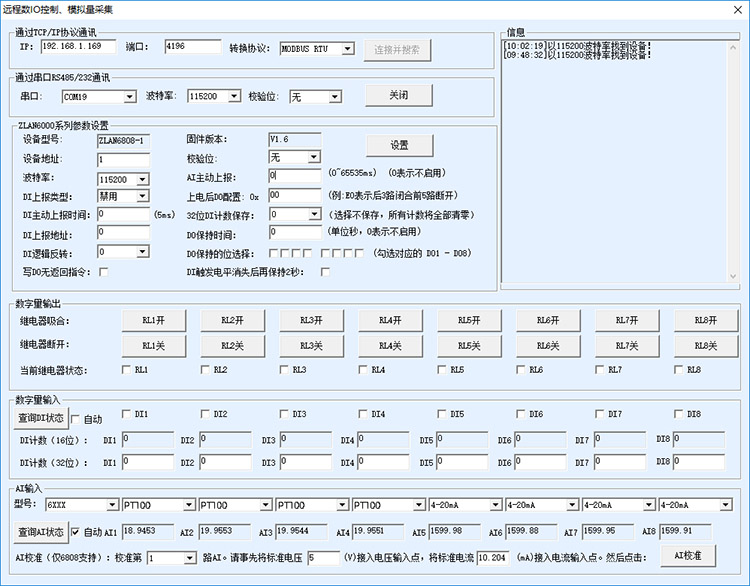 ZLAN6808具有8路模擬量采集,可以同時(shí)采集8個(gè)PT100/PT1000溫度傳感器,PT100的溫度采集范圍默認(rèn)是0~300度,PT1000溫度采集范圍是-10~300度,也可以定制各類型溫度范圍,滿足客戶需求。具有16位精度,誤差在0.1度內(nèi)。設(shè)置簡(jiǎn)單,使用方便。另外含有8路DO繼電器開關(guān)以及8路DI開關(guān)量采集,非常適合在工控環(huán)境下使用,有極高的性價(jià)比。如果客戶還有RS485設(shè)備,可以同時(shí)當(dāng)作串口服務(wù)器使用,進(jìn)行RS485轉(zhuǎn)以太網(wǎng)/WiFi/4G的功能。另外設(shè)備硬件內(nèi)置硬件看門狗,保證設(shè)備24小時(shí)不宕機(jī),穩(wěn)定運(yùn)行。