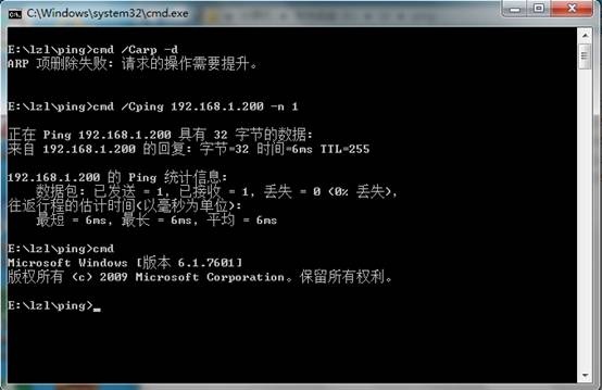除了ZLPing以外還可以用windows自帶的命令arp -d來清空物理地址緩存。從這里下載pingbat.bat后雙擊即可運(yùn)行一次清空物理地址緩存的操作。 正確的界面如圖2所示。