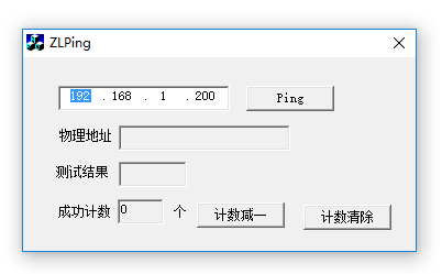 方法2:ZLPing工具方法。特別是在對(duì)嵌入式網(wǎng)卡進(jìn)行測(cè)試的情況下,需要連續(xù)地、高效地測(cè)試網(wǎng)絡(luò)設(shè)備。為此上海卓嵐開發(fā)了ZLPing程序,只要在每次新模塊連接到網(wǎng)絡(luò)后點(diǎn)擊Ping按鈕即可清空物理地址緩存。