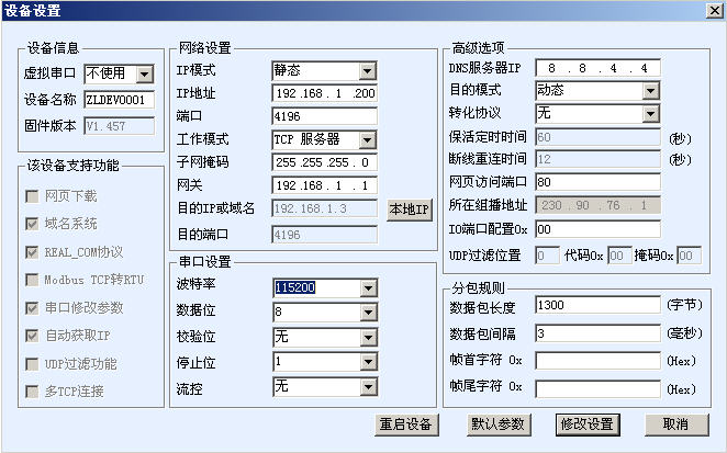 串口轉(zhuǎn)網(wǎng)口產(chǎn)品在使用前需要配置參數(shù),由于其是串口和網(wǎng)口的轉(zhuǎn)換器,所以主要的參數(shù)都是網(wǎng)絡(luò)參數(shù)和串口參數(shù)。其參數(shù)可以通過網(wǎng)頁法、windows工具法、串口類AT命令法進行配置。圖2、圖3顯示的就是網(wǎng)頁法、windows工具法的參數(shù)配置界面。