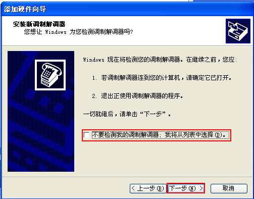 2.選擇“不要檢測我的調制解調器”,然后點擊下一步。