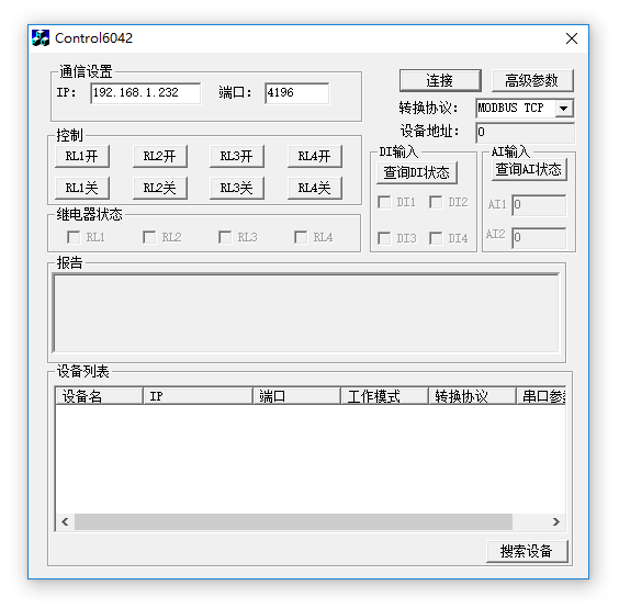 卓嵐為ZLAN6042、ZLAN6032遠(yuǎn)程IO控制器開發(fā)了網(wǎng)絡(luò)遠(yuǎn)程IO控制軟件Control6042。該軟件有2個版本,一個是運行于windows計算機平臺的Cotrol6042軟件,另外一個是運行于Andrio手機平臺的RemoteIO軟件。