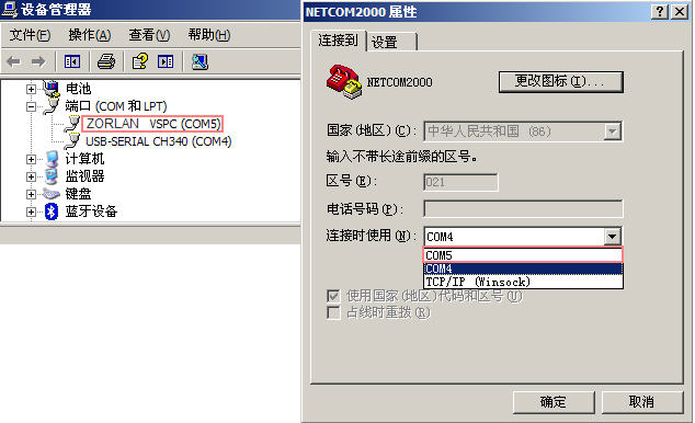 創(chuàng)建虛擬串口:打開(kāi)卓嵐ZLVircom程序,進(jìn)入“串口管理”界面,點(diǎn)擊“添加”按鈕,添加任意一個(gè)原來(lái)不存在的串口,例如COM5。此時(shí)打開(kāi)計(jì)算機(jī)的設(shè)備管理可以看到已經(jīng)出現(xiàn)了一個(gè)新的串口COM5,同時(shí)如果用“超級(jí)終端”選擇串口時(shí)已增加了COM5。此時(shí)你已經(jīng)可以正常打開(kāi)COM5使用了。