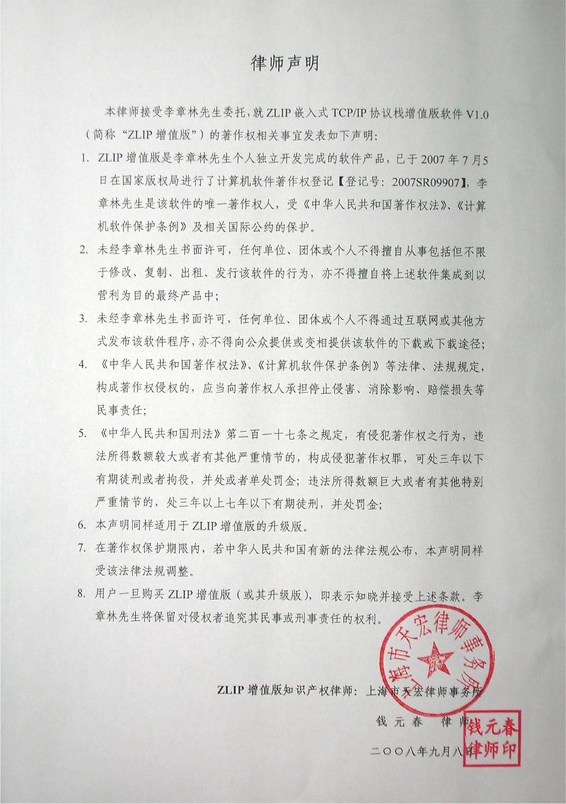 上海市天宏律師事務(wù)所由中國著名知識產(chǎn)權(quán)律師朱妙春先生于1998年創(chuàng)辦,是一家專業(yè)提供知識產(chǎn)權(quán)法律服務(wù)的合伙制律師事務(wù)所。此次的支持產(chǎn)權(quán)保護合同,進一步在知識產(chǎn)權(quán)方面對卓嵐的核心技術(shù)進行保護,根據(jù)相關(guān)法律規(guī)定只要仿制產(chǎn)品中有90%的目標(biāo)代碼相同則被認(rèn)為是侵權(quán)行為。