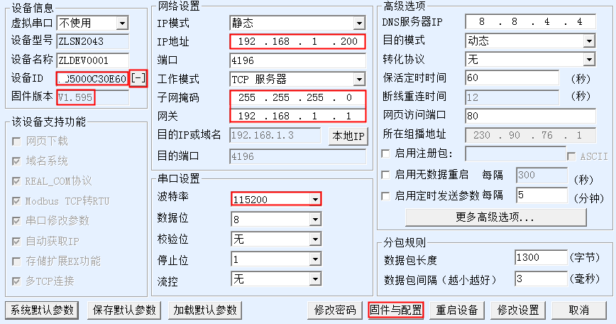 點(diǎn)擊設(shè)備ID邊上的[-]按鈕可以看到設(shè)備二維碼,后面會(huì)用到。確認(rèn)固件版本為1.595以上。為了能夠聯(lián)網(wǎng)請(qǐng)配置好IP。為了連接RS485設(shè)備,請(qǐng)配置好波特率。配置后后可以先點(diǎn)擊“修改設(shè)置”,然后再次進(jìn)入后點(diǎn)擊“固件和配置”,彈出“配置和下載”。