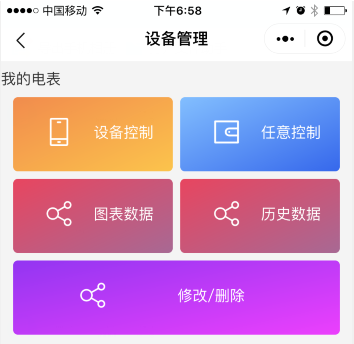 點(diǎn)擊“我的電表”,進(jìn)入“設(shè)備管理”界面,這里可以查看數(shù)據(jù)和設(shè)置數(shù)據(jù)(或稱(chēng)為控制)。