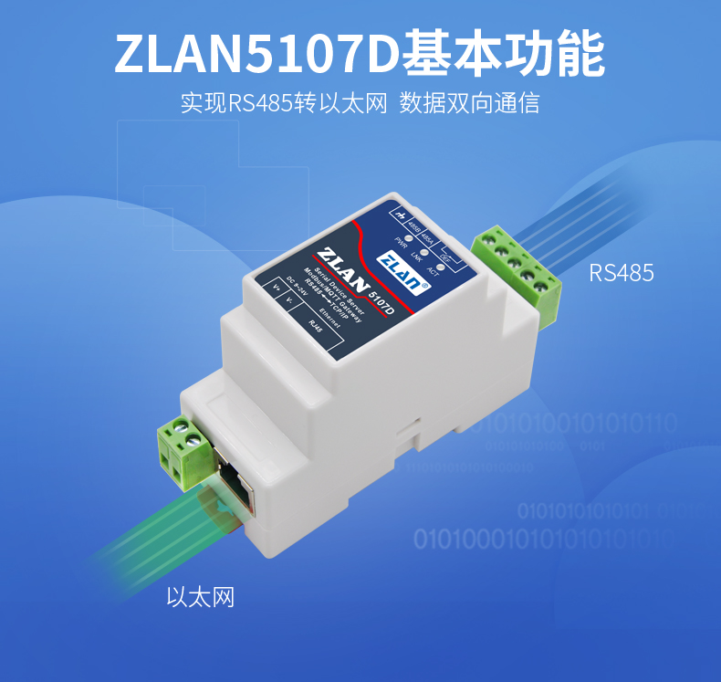 ZLAN5107D是一款專門為工業(yè)環(huán)境設(shè)計(jì)的RS485設(shè)備數(shù)據(jù)采集器/物聯(lián)網(wǎng)網(wǎng)關(guān),兼具串口服務(wù)器、Modbus網(wǎng)關(guān)、MQTT網(wǎng)關(guān)、RS485轉(zhuǎn)JSON等多種功能于一體。它具有一個(gè)RS485接口和一個(gè)以太網(wǎng)接口。它采用導(dǎo)軌型安裝方式,體積小巧安裝方便。采用接線端子式電源接入,9~24V寬電壓輸入。由于只有RS485接口,取消了工業(yè)儀表上不常用的RS232接口,節(jié)約了成本和體積,和普通產(chǎn)品相比具有更高的性價(jià)比。