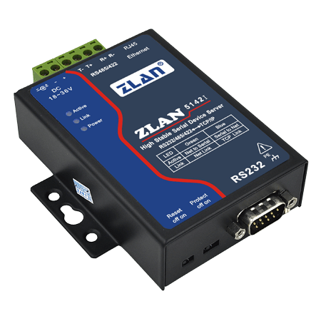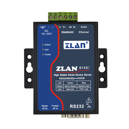 ZLAN5142I的RS485具有驅(qū)動256個負(fù)載的能力,和驅(qū)動32個負(fù)載的產(chǎn)品相比,可以實(shí)現(xiàn)更多設(shè)備數(shù)據(jù)監(jiān)控能力,節(jié)約了成本。ZLAN5142I具有RS232/485/422三種接口形式。輸入電壓可以提供DC Q2.1插孔或接線端子方式,輸入電壓為18~36V(也可以定制12V產(chǎn)品)??膳鋫鋵?dǎo)軌安裝配件。