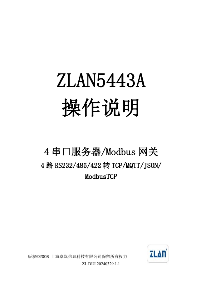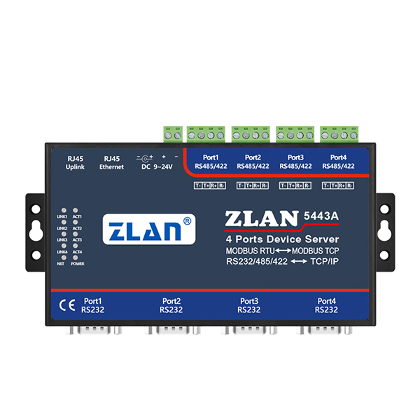 ZLAN5443A是上海卓嵐信息科技有限公司開發(fā)的新一代4串口服務(wù)器??梢詫?shí)現(xiàn)4路串口數(shù)據(jù)轉(zhuǎn)TCP/IP,支持兩個(gè)10M/100M以太網(wǎng)口。ZLAN5443A支持Modbus TCP轉(zhuǎn)Modbus RTU的Modbus網(wǎng)關(guān)功能。Modbus網(wǎng)關(guān)支持多個(gè)Modbus 客戶端連接上同時(shí)讀取數(shù)據(jù),即“多主機(jī)”功能。