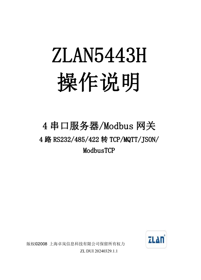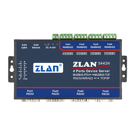 ZLAN5443H是上海卓嵐信息科技有限公司開發(fā)的新一代4串口服務(wù)器??梢詫?shí)現(xiàn)4路串口數(shù)據(jù)轉(zhuǎn)TCP/IP,支持兩個(gè)10M/100M以太網(wǎng)口。ZLAN5443H支持Modbus TCP轉(zhuǎn)Modbus RTU的Modbus網(wǎng)關(guān)功能。Modbus網(wǎng)關(guān)支持多個(gè)Modbus 客戶端連接上同時(shí)讀取數(shù)據(jù),即“多主機(jī)”功能。