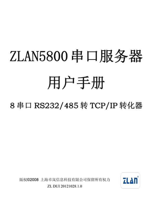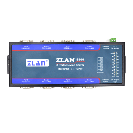 ZLAN5800串口服務(wù)器是上海卓嵐信息科技有限公司開發(fā)的一款8串口RS232/485和TCP/IP之間協(xié)議轉(zhuǎn)化器。ZLAN5800支持8個RS232串口、8個RS485串口(默認(rèn)不支持RS485,若需RS485,型號為ZLAN5800-485),通過一根網(wǎng)線連接到ZLAN5800,實現(xiàn)8個串口同時全雙工工作,每一個串口的功能和ZLAN2100/3100相同,是多串口聯(lián)網(wǎng)的理想選擇。