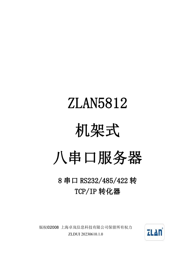 ZLAN5812串口服務(wù)器是上海卓嵐信息科技有限公司開發(fā)的一款機(jī)架式8串口RS232/485/422和TCP/IP之間協(xié)議轉(zhuǎn)化器。ZLAN5812支持8個(gè)RS232串口、16個(gè)RS485、RS422串口,且RS232支持流控。通過一根網(wǎng)線連接到ZLAN5812,實(shí)現(xiàn)8個(gè)串口同時(shí)全雙工工作,每一個(gè)串口的功能和單串口服務(wù)器ZLAN2100/3100相同。每路串口可作為TCP服務(wù)器、TCP客戶端、UDP、UDP組播。ZLAN5G00A是多串口聯(lián)網(wǎng)的理想選擇。