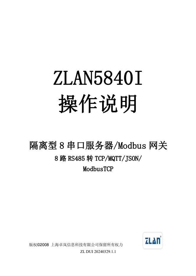 ZLAN5840I是上海卓嵐信息科技有限公司開(kāi)發(fā)的新一代RS485隔離型8串口服務(wù)器/Modbus 網(wǎng)關(guān),可以有效的隔離RS485總線上的干擾對(duì)設(shè)備工作的影響,保證設(shè)備的穩(wěn)定性。適合RS485總線有干擾的環(huán)境下使用。內(nèi)置電源浪涌保護(hù)。