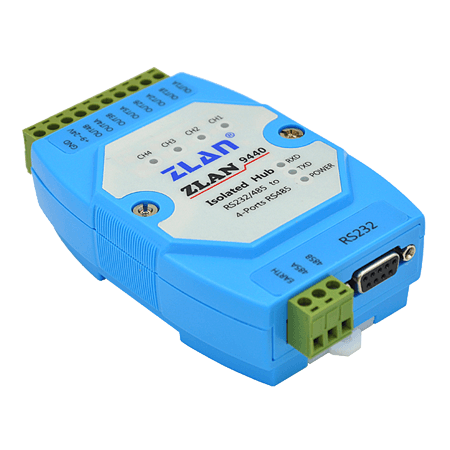 ZLAN9440是一款可通過一路RS485/232主口擴(kuò)展出4路RS485從口的工業(yè)級(jí)隔離型4口RS485集線器??梢杂行У膶?shí)現(xiàn)RS485網(wǎng)絡(luò)的中繼、擴(kuò)展與隔離。ZLAN9440同時(shí)可以作為有源的隔離型的RS232轉(zhuǎn)RS485轉(zhuǎn)換器。如果只需要一路有源隔離型RS232轉(zhuǎn)RS485則型號(hào)是ZLAN9410。如需8口485HUB,請(qǐng)選擇ZLAN9480A。