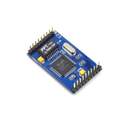 ZLSN2003是上海卓嵐開發(fā)的新一代串口轉(zhuǎn)以太網(wǎng)嵌入式模塊。該模塊功能強(qiáng)大,其基本功能是實(shí)現(xiàn)串口聯(lián)網(wǎng)的方便性,即只要和用戶的串口TTL電平的串口連接,ZLSN2003就可以將數(shù)據(jù)發(fā)送到基于TCP/IP/UDP的網(wǎng)絡(luò)服務(wù)器上。默認(rèn)情況下串口和以太網(wǎng)之間是透明傳輸協(xié)議,即串口發(fā)送什么,網(wǎng)絡(luò)就收到什么數(shù)據(jù),不會(huì)數(shù)據(jù)格式轉(zhuǎn)化。ZLSN2003內(nèi)部已經(jīng)集成網(wǎng)絡(luò)變壓器,外圍電路非常簡(jiǎn)單。