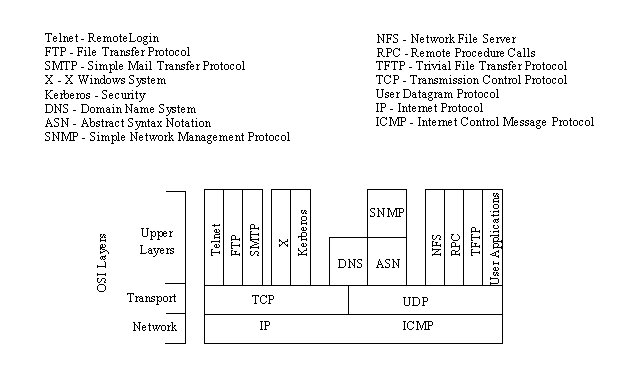 Figure 2.1. TCP/IP suite and OSI layers.