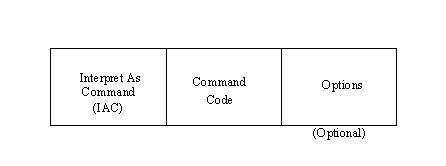 Telnet commands are sent in a formal package called a command, as shown in Figure 6.5. Typically the commands contain two or three bytes: the Interpret as Command (IAC) instruction, the command code being sent, and any optional parameter to the command. The options supported by Telnet are shown in Table 6.2.